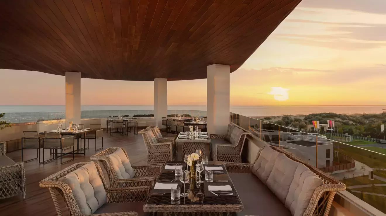 Собственный пляжный комплекс с VIP-зоной, двумя открытыми бассейнами (один — подогреваемый), крытым бассейном и аквапарком создаёт идеальные условия для отдыха у моря. Любители спорта оценят теннисные корты, футбольное поле и тренировки с инструкторами.