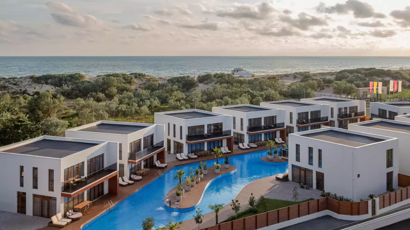 FÜNF Luxury Resort & Spa — флагман премиального отдыха на побережье Анапы. Отель расположен на первой линии, у подножия песчаных дюн, где море слышно прямо из окна. Атмосфера сочетает современную архитектуру, южный свет и безупречный сервис.