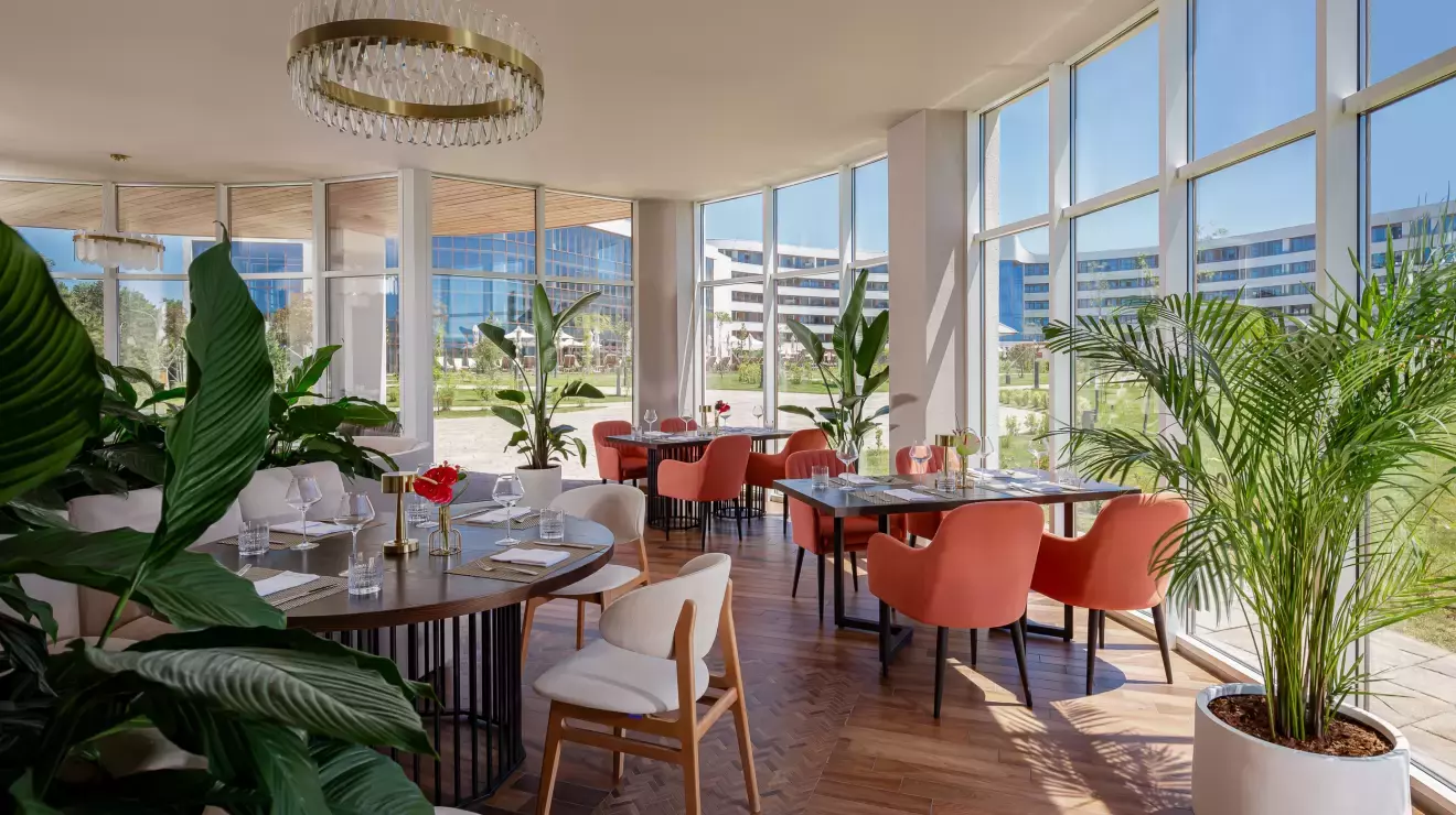Для бизнес-встреч и камерных мероприятий предусмотрены два зала — «Шостакович» (127 м²) и «Чайковский» (91 м²). Отель сочетает возможности MICE и приватного отдыха: комфорт, гибкость и современную инфраструктуру.