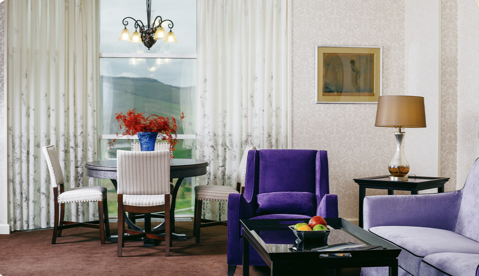 СЬЮТ «Серебрянный век» 100 м2 Сьют состоит из 3 комнат: гостиной, спальни, кабинета и двух ванных комнат. В спальне – кровать king size, в гостиной и кабинете двуспальные диван-кровати. Возможно использование кабинета в качестве детской комнаты. Номера оснащены системой кондиционирования воздуха, цифровым телевидением, сейфом, письменным столом и косметическими принадлежностями для комфортного проживания.