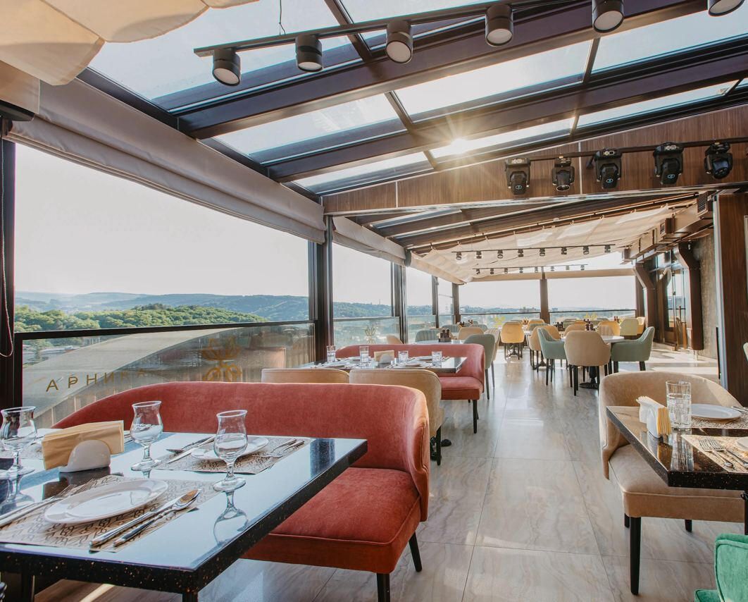 РЕСТОРАН ПАНОРАМА Единственный панорамный ресторан в Кисловодске Насладитесь изысканными блюдами и потрясающими видами на город и горы. Ресторан работает по системе à la carte и доступен только для гостей санатория «Арника», создавая уникальное кулинарное впечатление. По желанию доступен room-service – закажите любимые блюда прямо в номер.