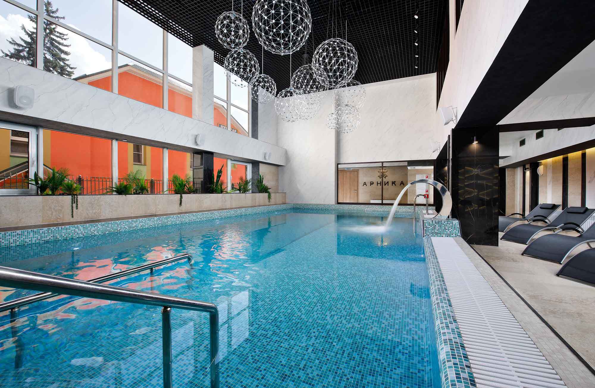 ТЕРМАЛЬНЫЙ КОМПЛЕКС «АРНИКА» Погрузитесь в атмосферу полного расслабления и заботы о себе в термальном комплексе санатория «Арника». Здесь всё создано для того, чтобы вы восстановили силы, улучшили самочувствие и насладились гармонией тела и духа. Комплекс включает в себя современный крытый бассейн, разнообразные виды бань и уникальную зону для солнечных и воздушных ванн. Благодаря продуманной инфраструктуре, вы сможете без труда перемещаться между зонами отдыха, наслаждаясь каждой минутой пребывания.
