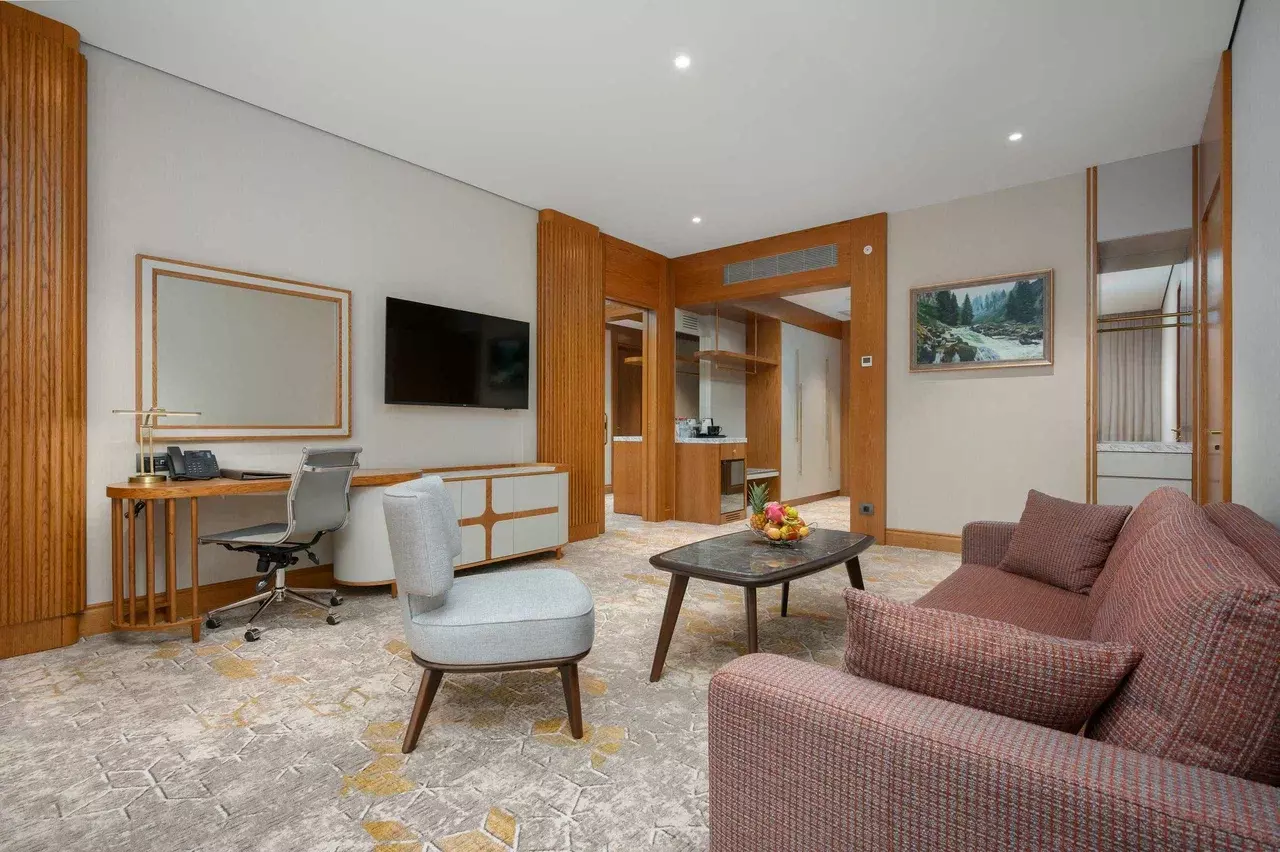 Стандарт — 38 м² (до 2 гостей) Оснащение: двуспальная кровать, балкон, телевизор, фен, мини-бар, сейф, климат-контроль, рабочая зона, душевая кабина и др. Описание: элегантный номер для проживания вдвоём. Натуральные текстуры, мягкий свет и продуманные детали создают атмосферу уюта и спокойствия. Просторная кровать, эргономичная рабочая зона и удобная мебель. Окна на ухоженную территорию санатория. Номера в радиальных корпусах — тишина и приватность. Супериор (DBL/Twin) — 42 м² (до 2+2 детей / до 3 гостей) Оснащение: DBL или две отдельные кровати, балкон, базовая комплектация как в «Стандарте». Описание: просторный номер для отдыха вдвоём (возможность размещения детей на доп. местах). Светлая палитра, элегантная мебель, продуманная планировка — подходит для семейного отдыха или уикенда вдвоём. Делюкс — 50 м² (до 3 гостей) Оснащение: увеличенная площадь, зона отдыха, базовая комплектация. Описание: элегантный номер с двуспальной кроватью и зоной отдыха — оптимален для пары с ребёнком/третьим взрослым на доп. месте. Атмосфера уединения и спокойствия. Делюкс Элегант — 55 м² (до 3−4 гостей) Оснащение: просторная гардеробная, раскладной диван/кресло, базовая комплектация. Описание: пастельные тона, мягкий свет, продуманная мебель. Возможность размещения одного гостя на доп. месте — универсально для пары или семьи с ребёнком. Сюит Модерн / Сюит Прайм — 67 м² (до 6 гостей) Оснащение: 2 комнаты, две ТВ-панели, зоны отдыха; расположение — восьмиэтажные корпуса. Описание: гостиная элегантно отделена от спальни декоративной перегородкой — приватность и уют. Подходит для семьи или компании до 6 человек. Делюкс Премьер — 70 м² (до 3 гостей) Оснащение: угловой однокомнатный, диван, рабочая зона, два отдельных входа, две ванные комнаты, панорамные окна; размещается в восьмиэтажных корпусах. Описание: спальная и зона отдыха визуально разделены перегородкой. Вид на ухоженную территорию санатория. Приватность и утончённая атмосфера. Люкс — 84 м² (до 5 гостей) Оснащение: 2 комнаты, два отдельных входа, две ванные комнаты. Описание: выбор для тех, кто ценит личное пространство — идеален для семейного отдыха или максимального уровня уединения. Люкс Семейный — 126 м² (до 7 гостей) Оснащение: 3 комнаты — две спальни + гостиная; каждая комната с отдельным входом и собственной ванной. Описание: оптимален для большой семьи/компании: комфортное размещение до 7 человек. Спокойная палитра, продуманная планировка и сервис создают атмосферу уюта и гармонии.