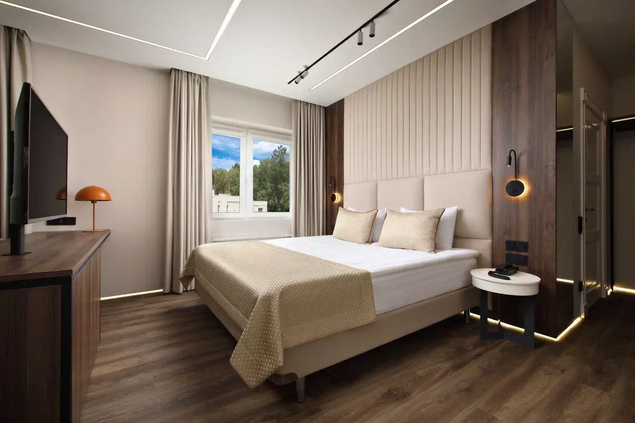 Два современных корпуса с номерами категории 4* (от стандарта до люкса), где по тёплым переходам вы легко доберётесь до медицинского центра для удобного прохождения всех процедур.